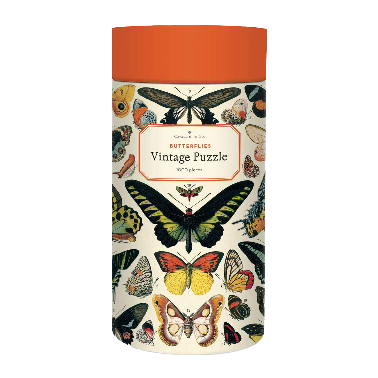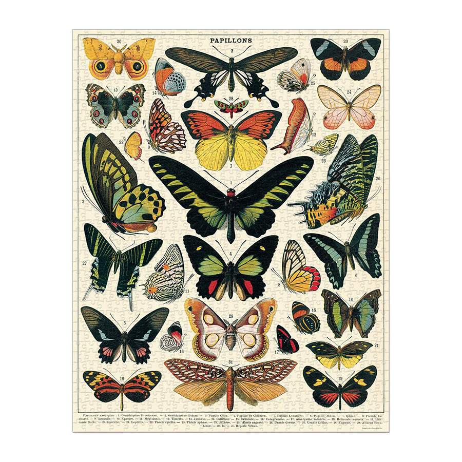 Challenge yourself with a 1000-piece jigsaw puzzles featuring a vintage butterflies design.