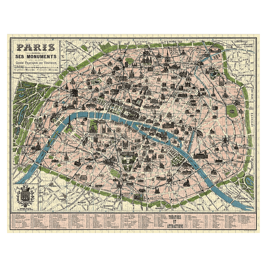 Challenge yourself with a 1000-piece jigsaw puzzles featuring a vintage Map of Paris.