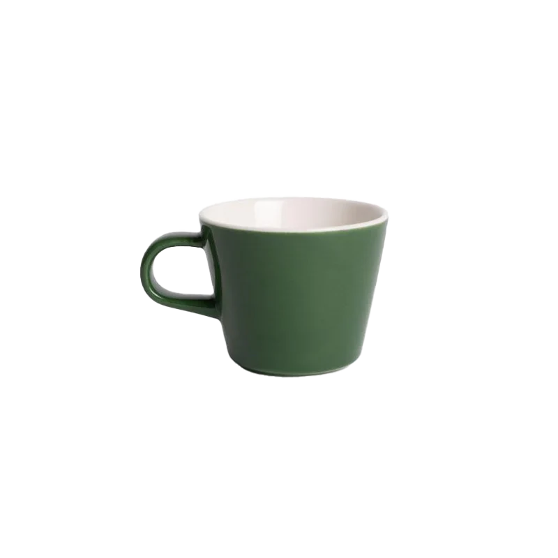 A fine, light cup, created by Acme for modern espresso. The 110ml Roman cup is ideal for serving espresso, or elegant fluffies! This cup is made from durable porcelain and glazed in stunning kawakawa green.