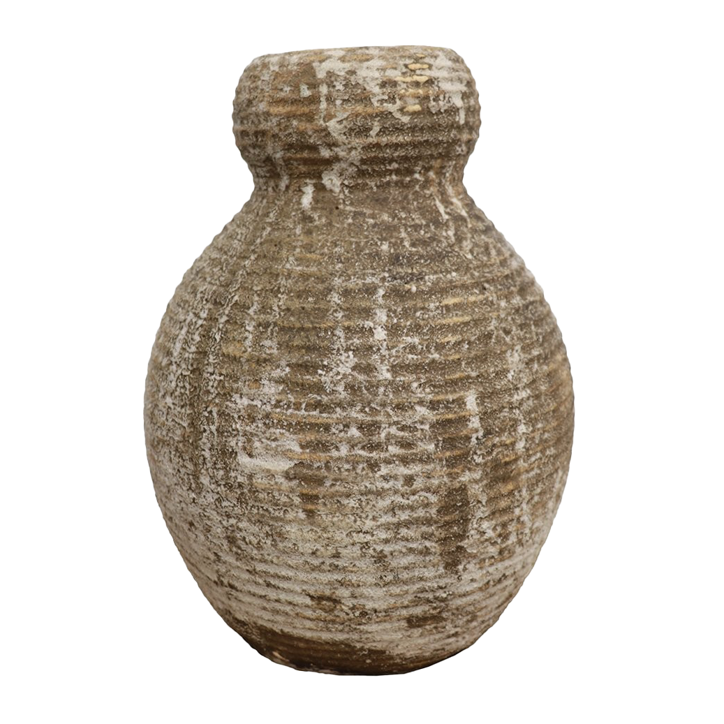 Tall handcrafted earthenware vessel featuring a specialty glaze to create a rustic aged finish.