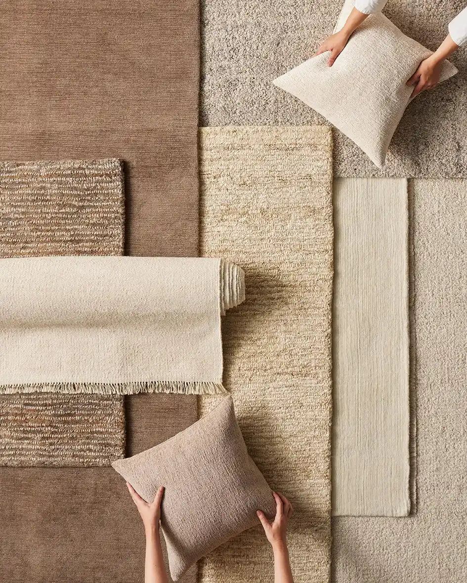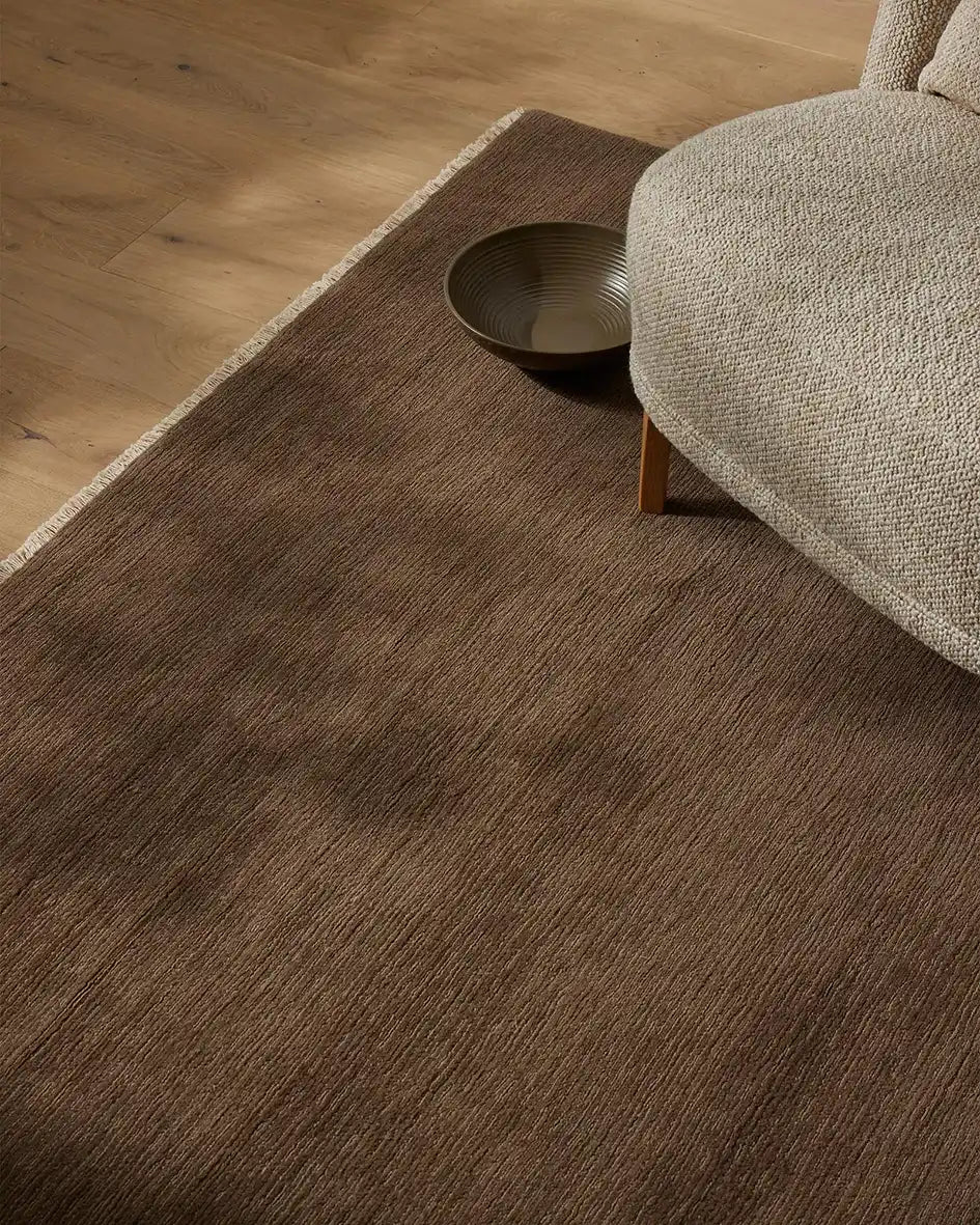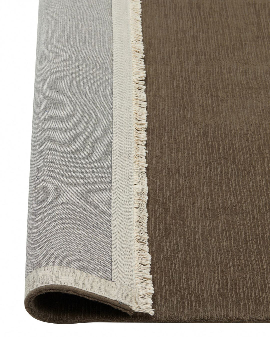 Featuring a unique linear texture produced with a mix of cut and loop pile and finished with a refined contrasting fringe at each end.