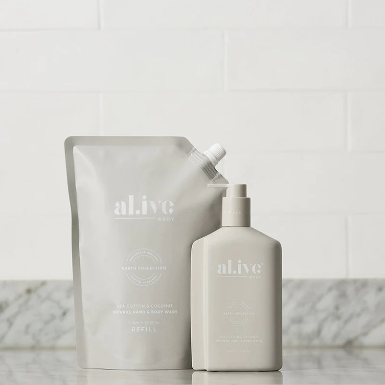 Al.ive hand + body wash refill sea cotton & coconut 1000mls