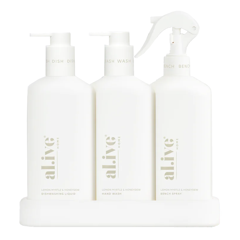 Al.ive kitchen hand wash + dish wash + bench spray trio lemon myrtle & honeydew