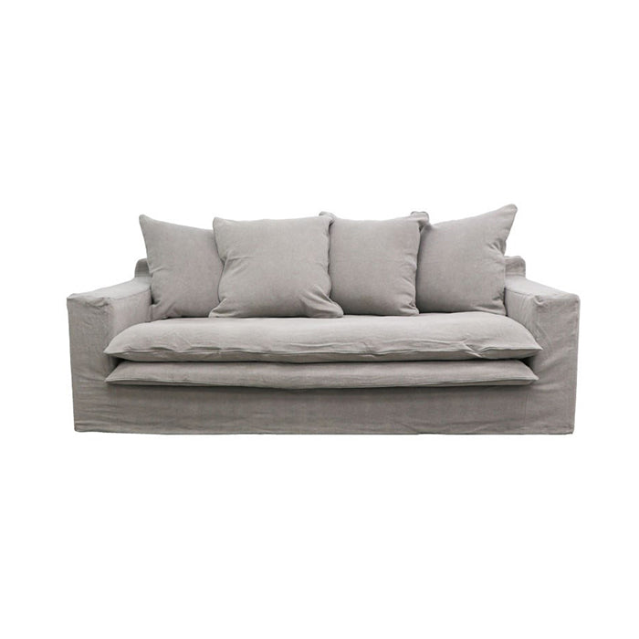 It has a boxy design with slip covers for easy cleaning. The slipcover is made of a thick hardwearing fabric made of 70% cotton and 30% linen.