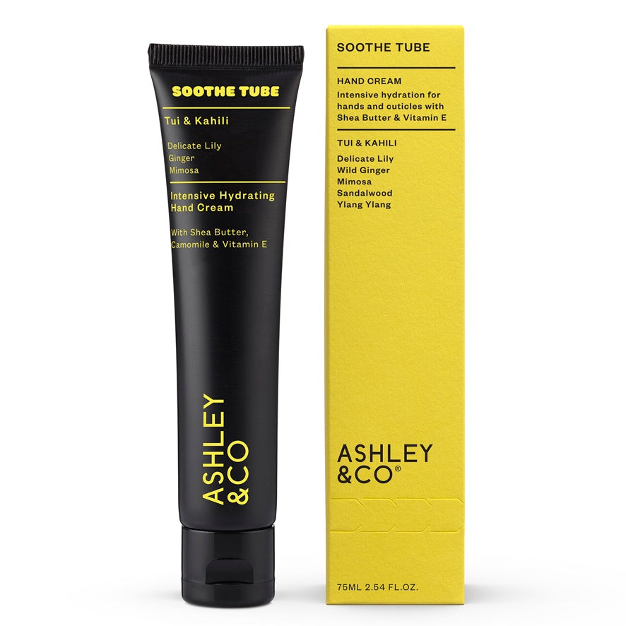 Ashley & Co's Soothe Tube hand cream smells great as well as being good for your skin. The intensive hydrating cream is a rich, yet non–greasy aromatic natural blend for parched hands & cuticles. The combination of shea butter, camomile extract & vitamin E soothes and nourishes hands.