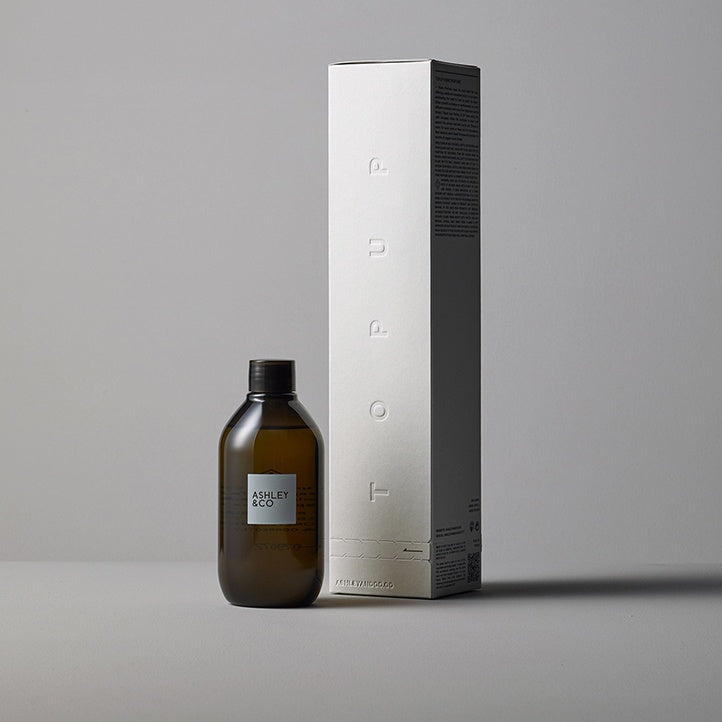 Designed to refill your Ashley & Co hand blown glass bottle, each top-up includes 250ml of scent, plus a fresh supply of reed sticks.