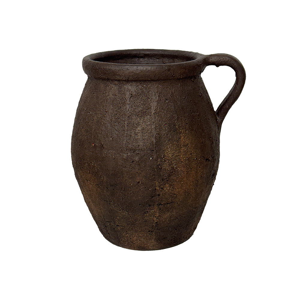 This rustic and richly textured handcrafted terracotta jug will add character and texture to any living space.