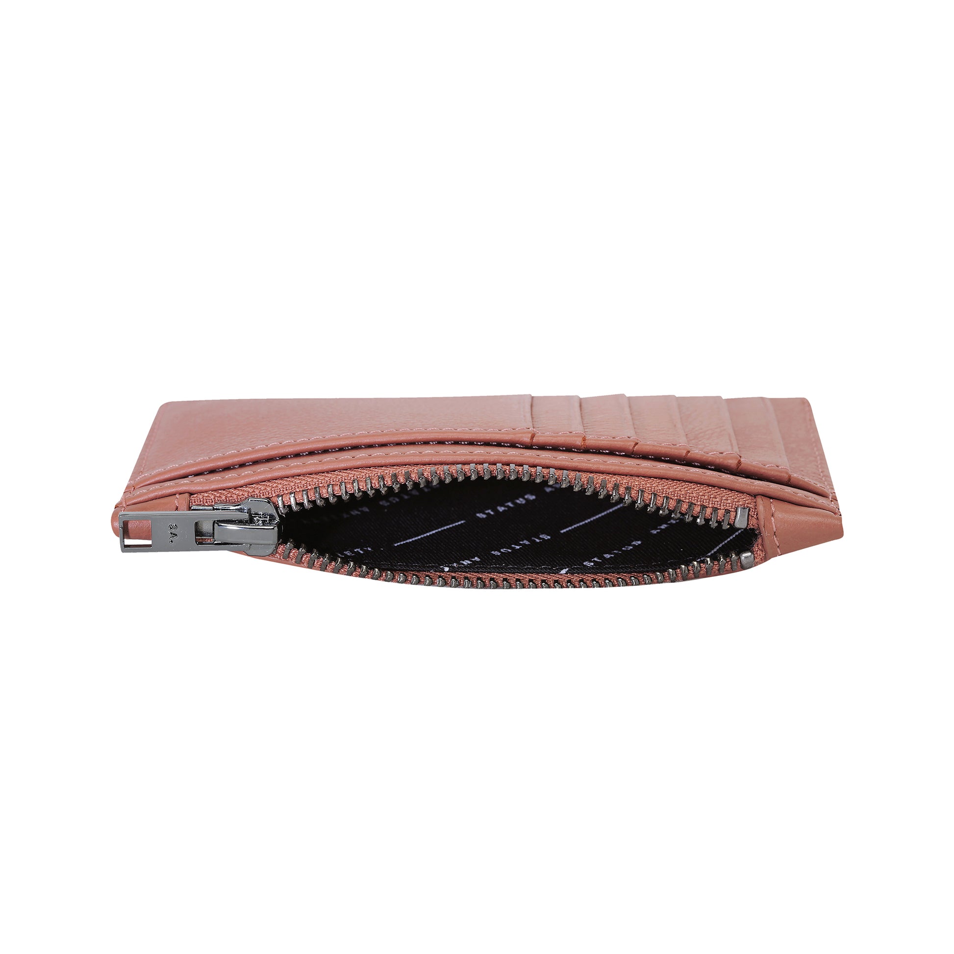 Featuring 6 card slots that can fit up to 12 cards, a zipper zone for coins and side open pocket to stash receipts or cash.