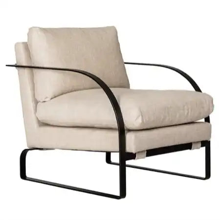 This striking club chair is made from 100% linen with a black powder coated metal frame.