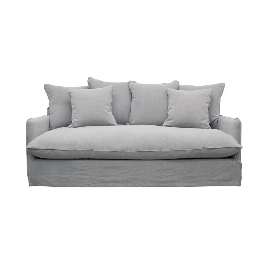 It has a strong tailored silhouette with removable slip covers for easy cleaning. The slipcover is made of a thick hardwearing fabric made of 70% cotton and 30% linen.
