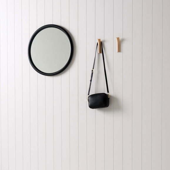 The extruded triangular form seamlessly lifts away from the wall to create a subtle hanging point to hang clothing, towels, keys and other prized items.