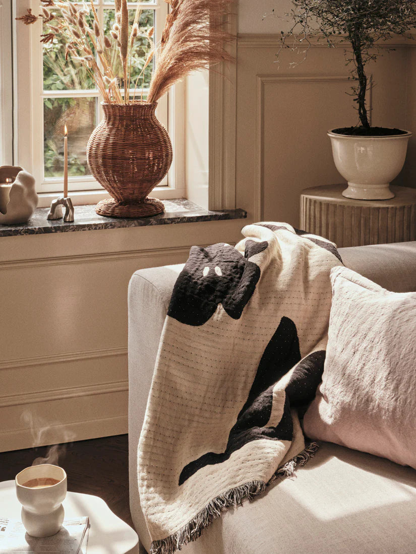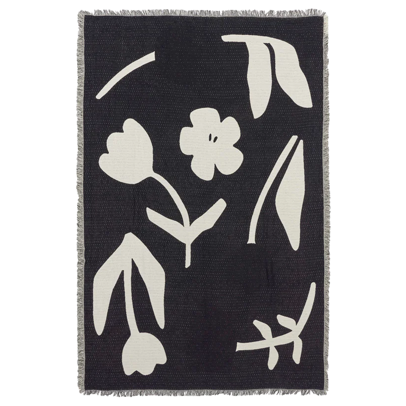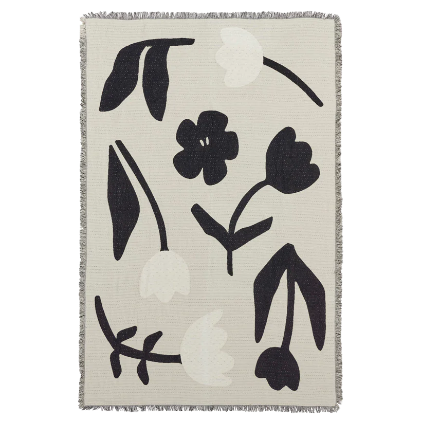 Reversible cotton throw by Broste Copenhagen. The throw is crafted from 100% cotton and features a bold floral design with decorative fringe.