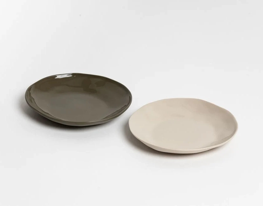 Ceramic organic shaped round dish olive 13cm