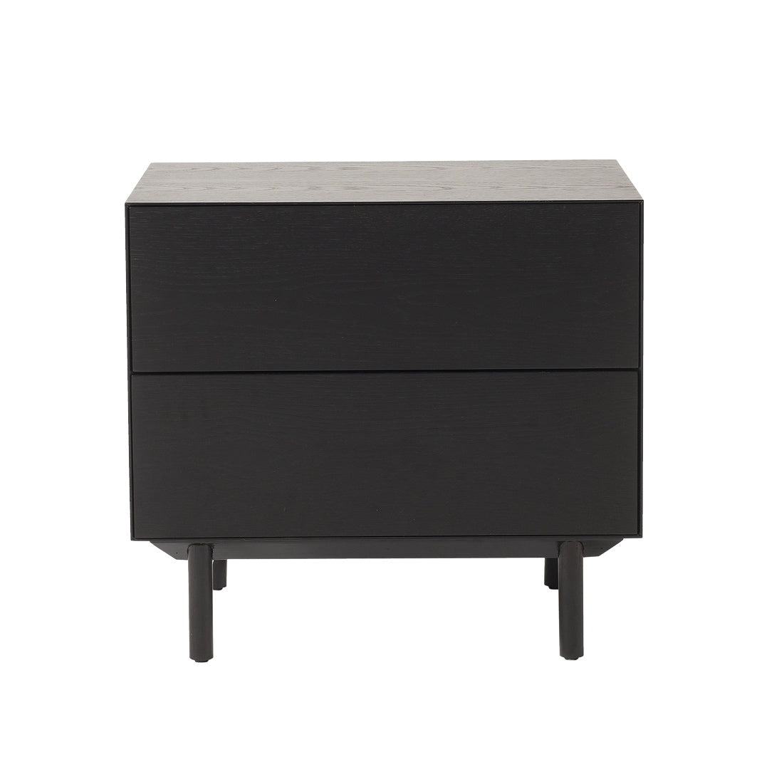 The bedside cabinet features two spacious drawers, and is made of a combination of solid American white oak and American white oak veneer.