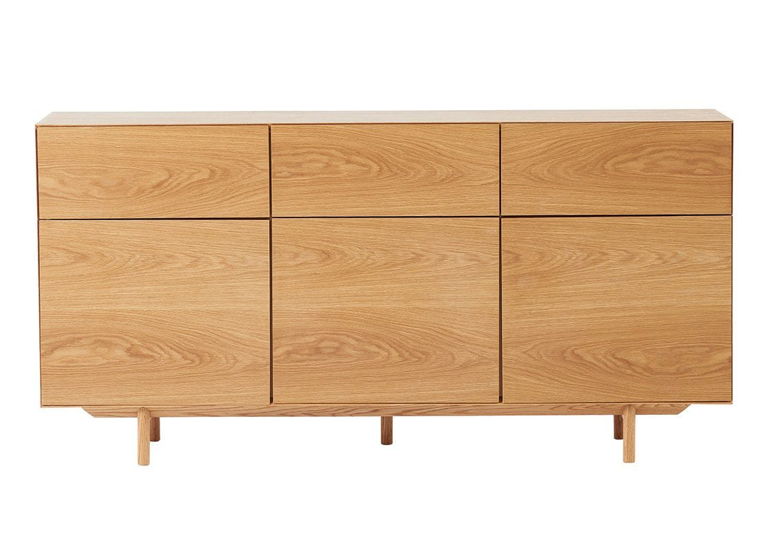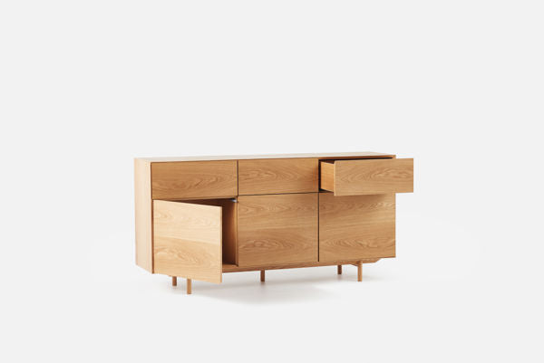 The sideboard is made of a combination of solid American white oak and American white oak veneer with Hettich drawer-runners.