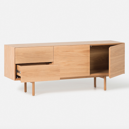 The sideboard is made of a combination of solid American white oak and American white oak veneer.