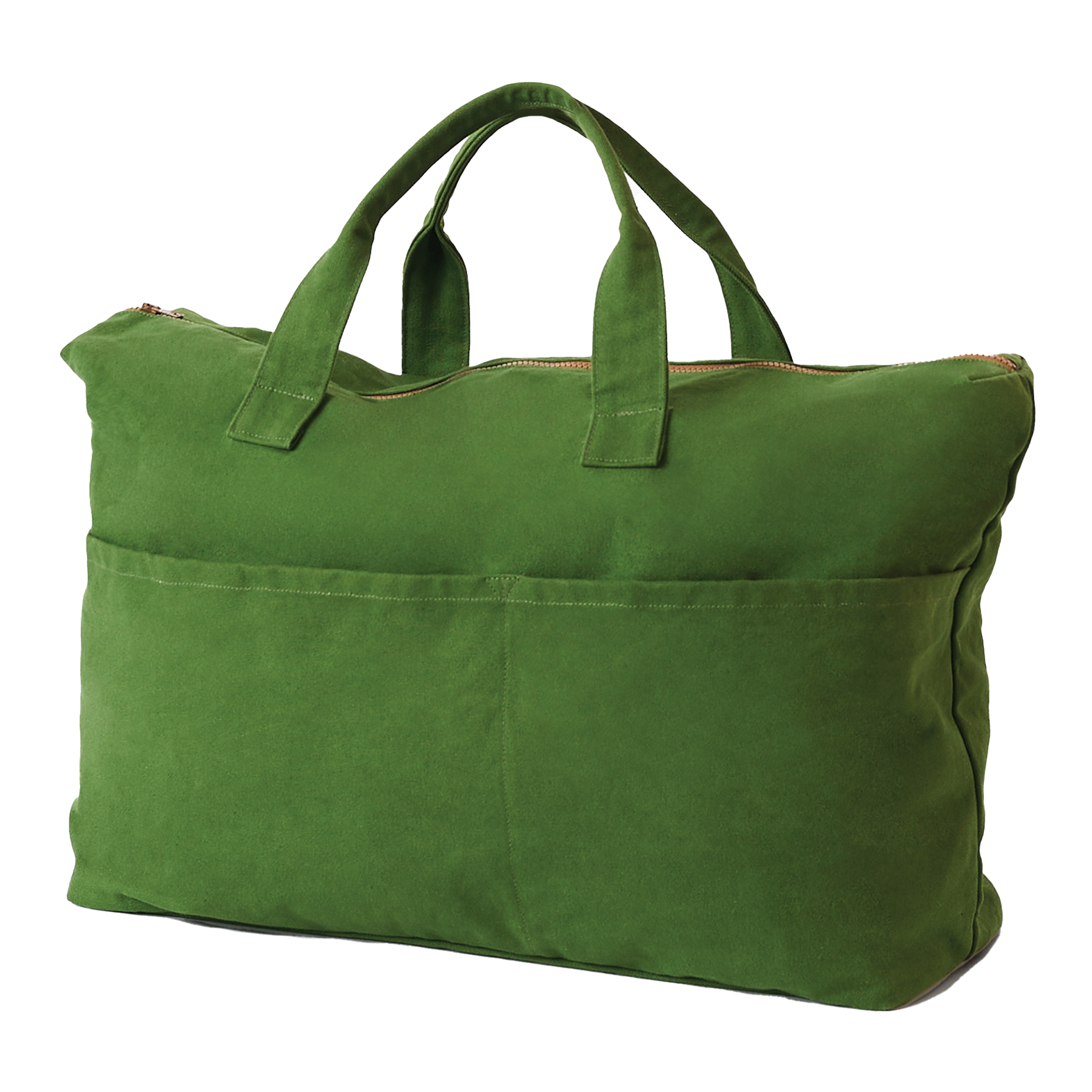 Head out of town with this generously sized carryall bag. The generously sized carryall bag makes a bold colour statement with its vibrant spirulina hue contrasting with a warm masala zip.