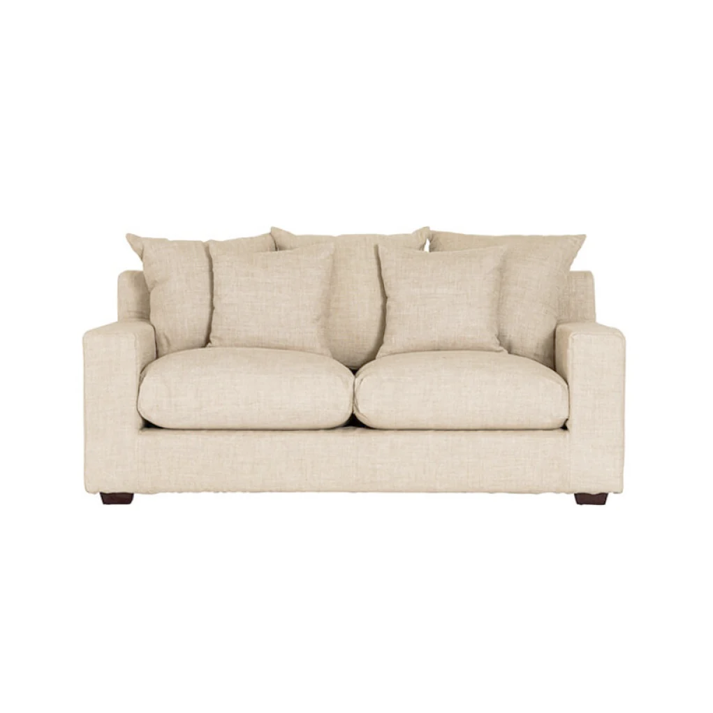 This 100% linen sofa has unprecedented sink-in comfort, with a deep seat and five cushions for laidback lounging.