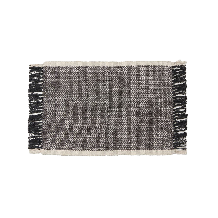 Add a touch of fun to your entrance with this cotton door mat featuring tassels and a natural coloured side border.