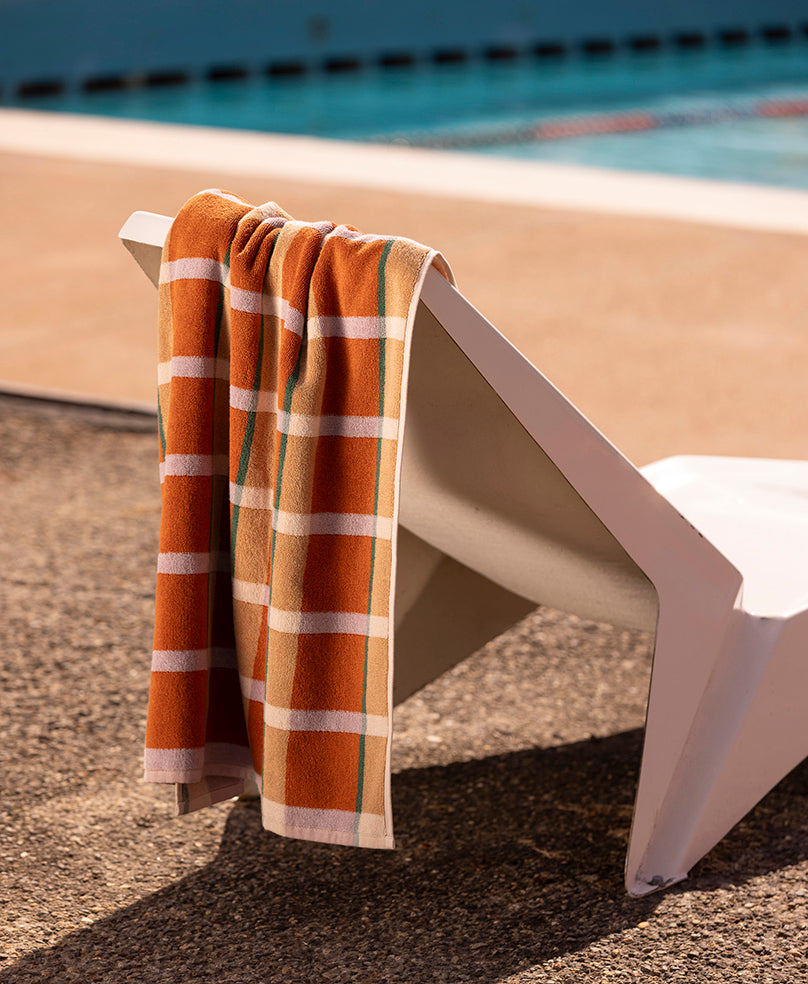 The multi-coloured reversible plaid design takes inspiration from the Mexican island paradise of Cozumel—famed for its turquoise Caribbean waters, white sand beaches, and pastel-toned architecture.
