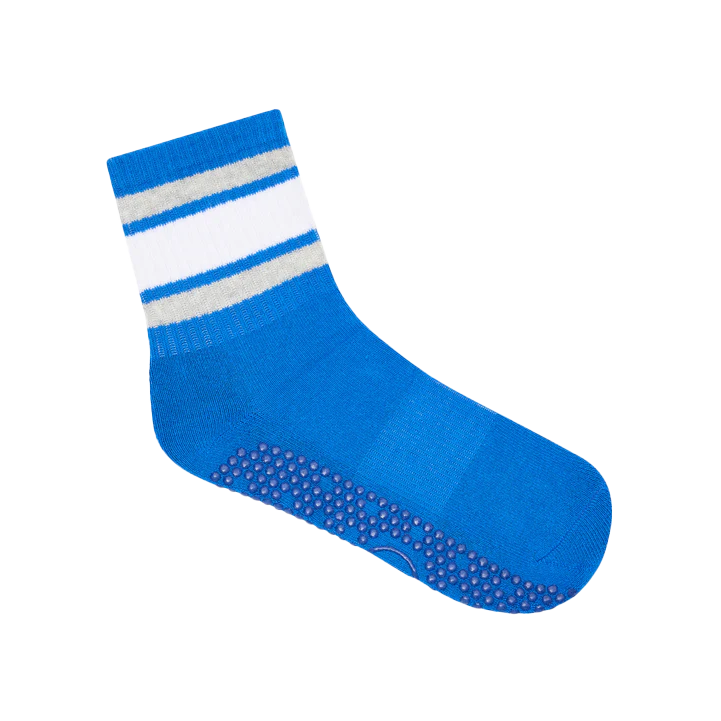 Crew pilates grip socks electric blue stripe