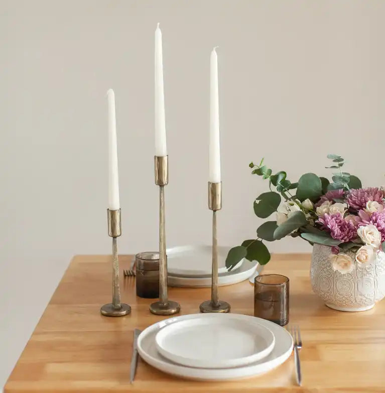 Ethically hand-forged by master artisans in India, this exquisite single candleholder features a beautifully textured finish that showcases craftsmanship passed down through generations.