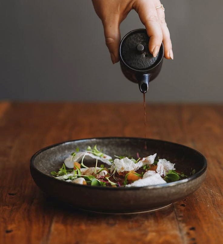 This handmade plate features a unique glaze with rustic tones with a focus on simple texture.