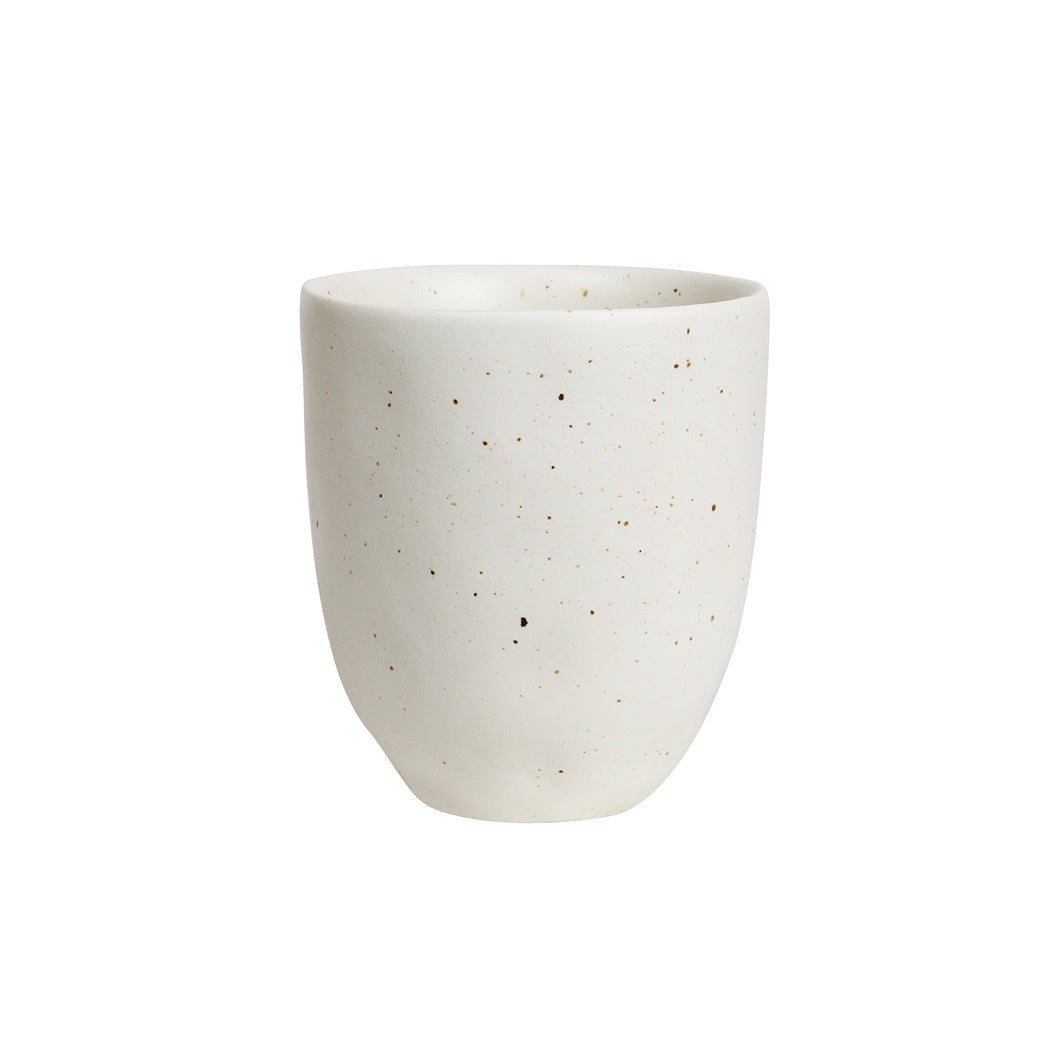 This high-fired porcelain handleless cup is perfect for your morning latte.