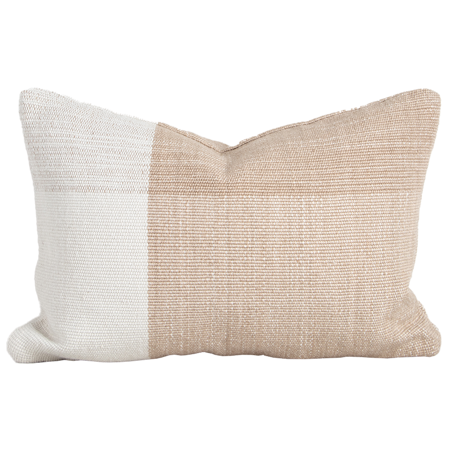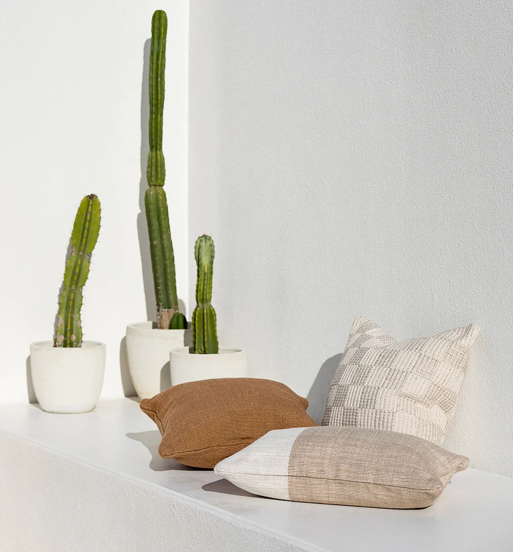 This textured Finn cushion will look good both indoors and outdoors, tones of ivory and nougat are woven into an off-set linear design.