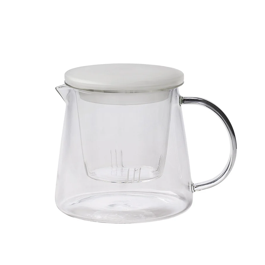 Make tea for two with this clear glass teapot featuring a white porcelain lid.