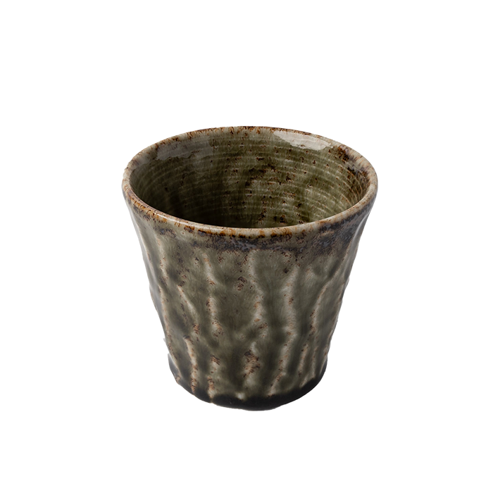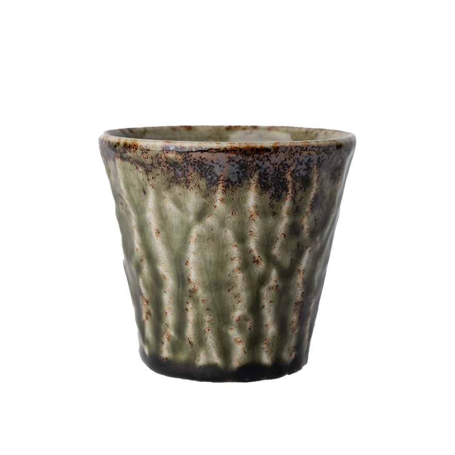 Make your favourite drink in this lovely ribbed cup, featuring a moss green gloss with rich brown undertones.