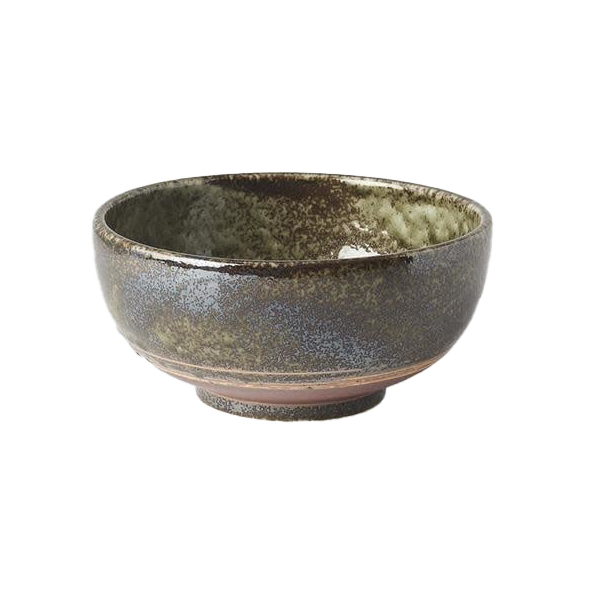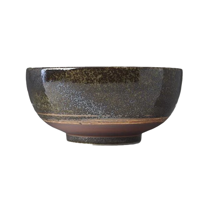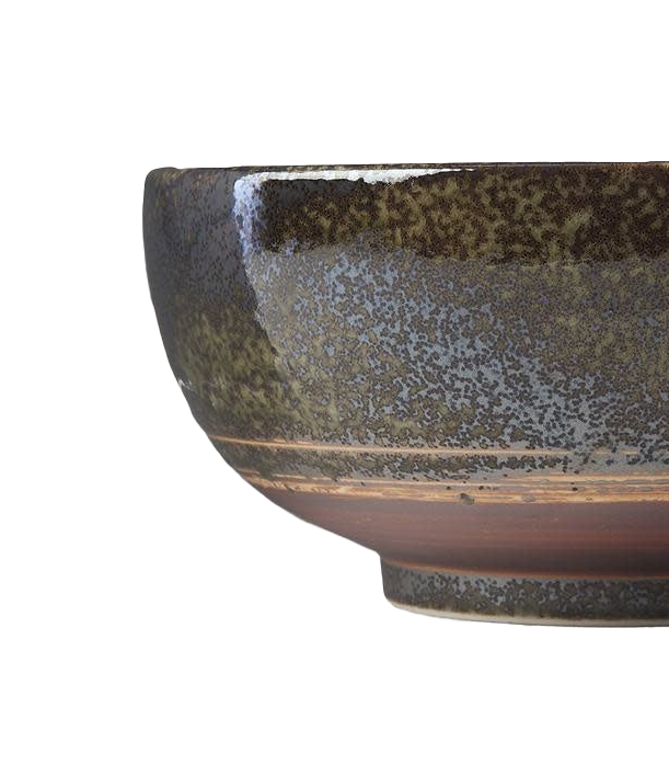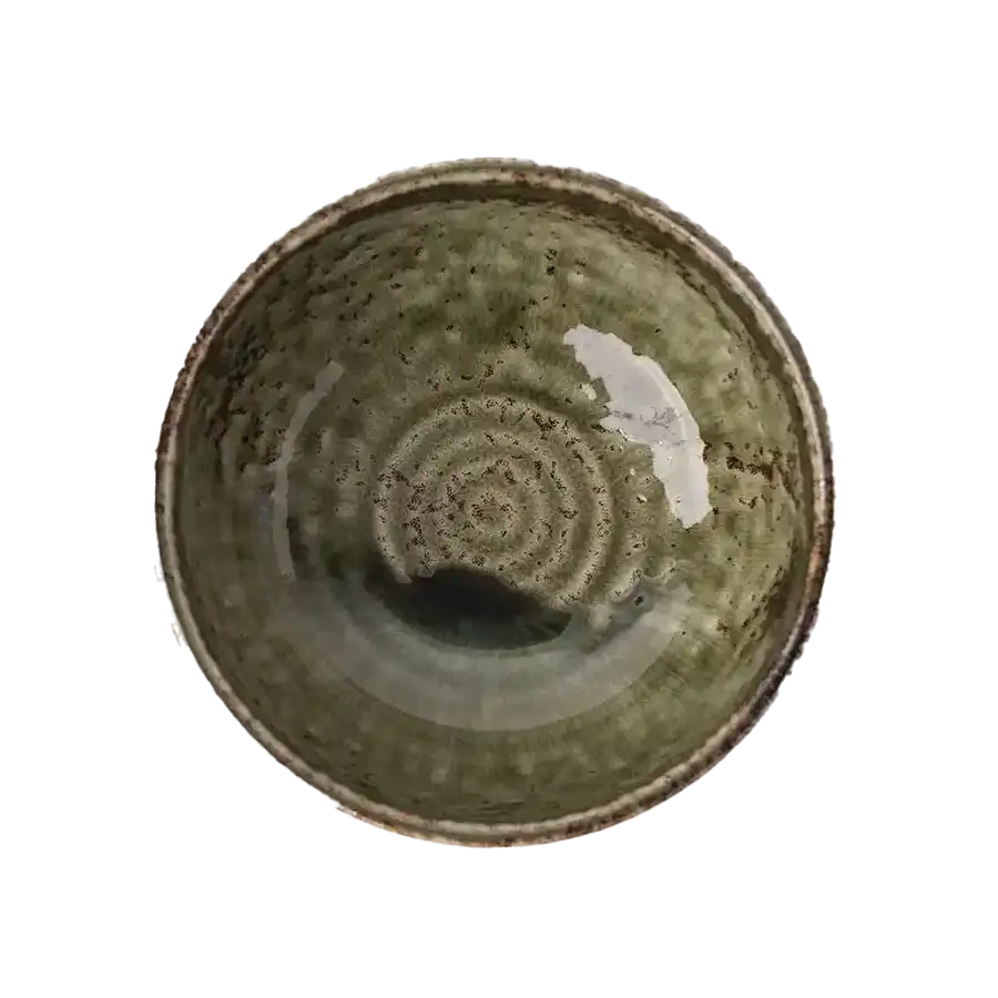 Handmade bowl featuring a moss green gloss with rich brown undertones.