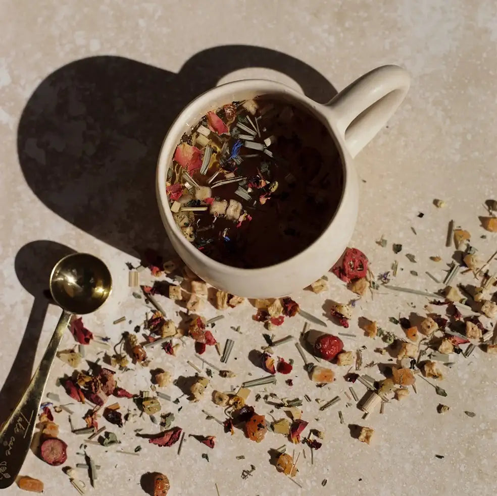 Warming spices such as turmeric and ginger have been delicately blended with lemongrass, pineapple and field horsetail to help rebuild wellness from within. Accented with a sweet melody of petals from roses, daisies, cornflower and lavender will have you feeling radiant and well-digested.