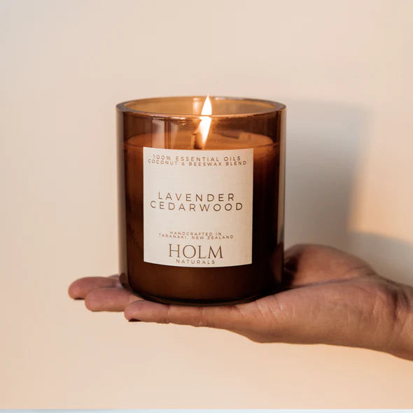 Warm and woody with floral notes describes this custom blend of lavender and cedarwood essential oils scented candle. A delicate and calming aroma, designed to create a grounding and relaxing environment.