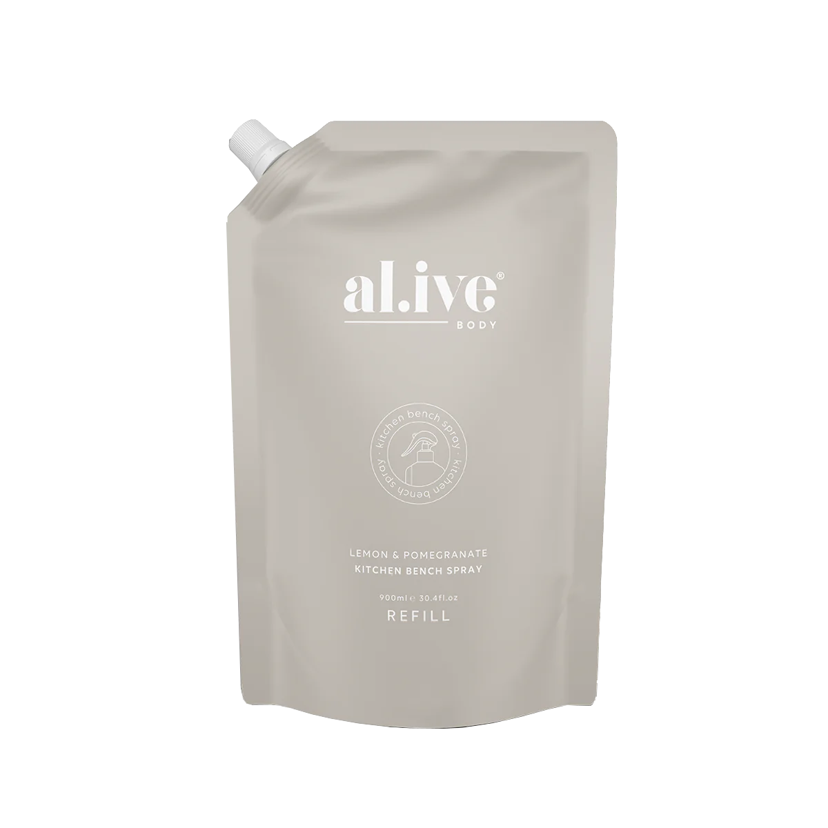 Al.ive kitchen bench spray refill lemon & pomegrante 900ml