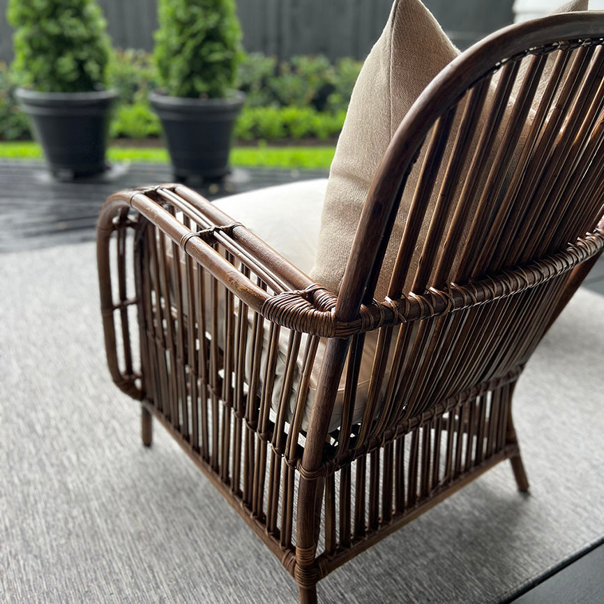 If using the rattan chair outside keep it undercover and out of direct sunlight, otherwise the frame will deteriorate and the colour will fade.