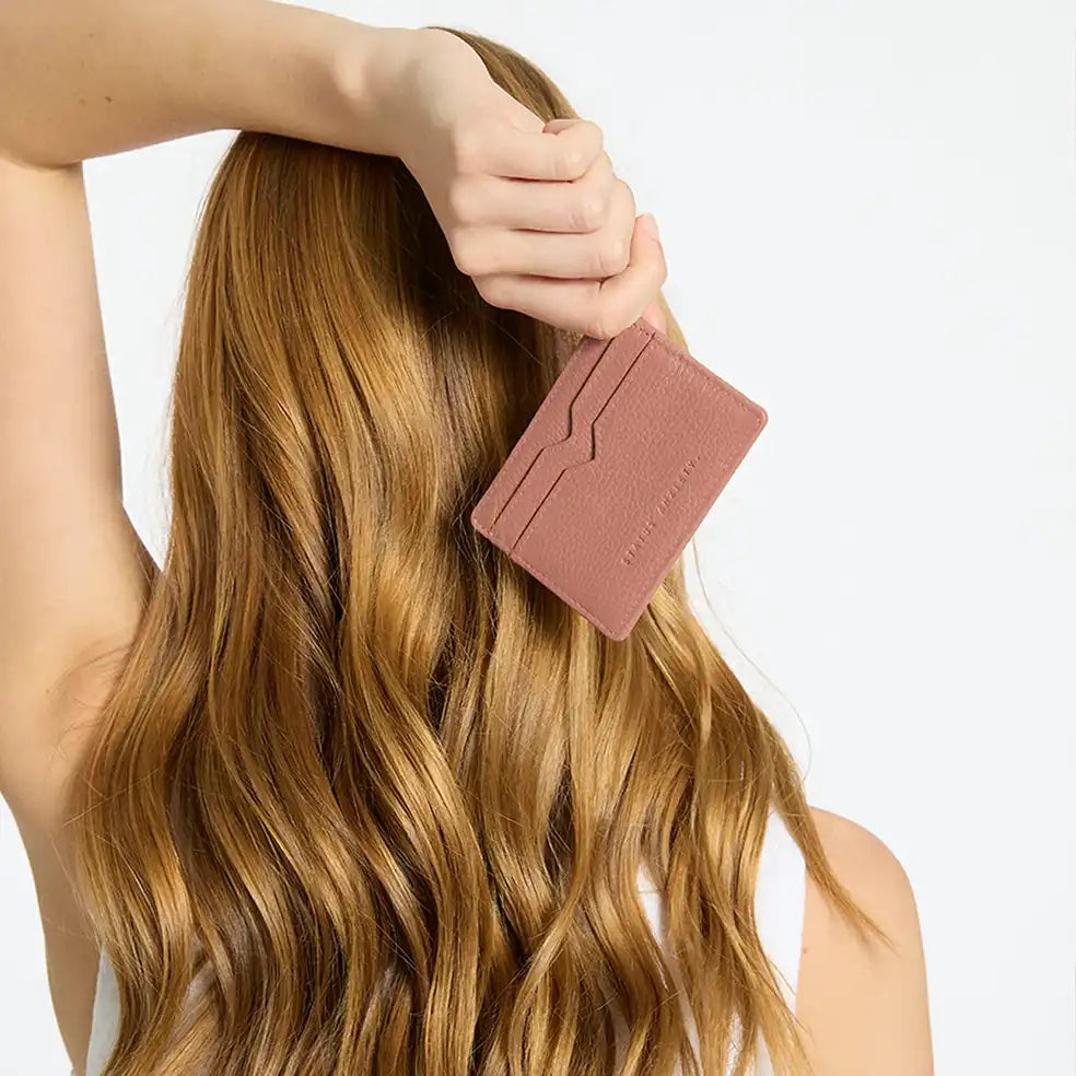 Leather card holder dusty rose
