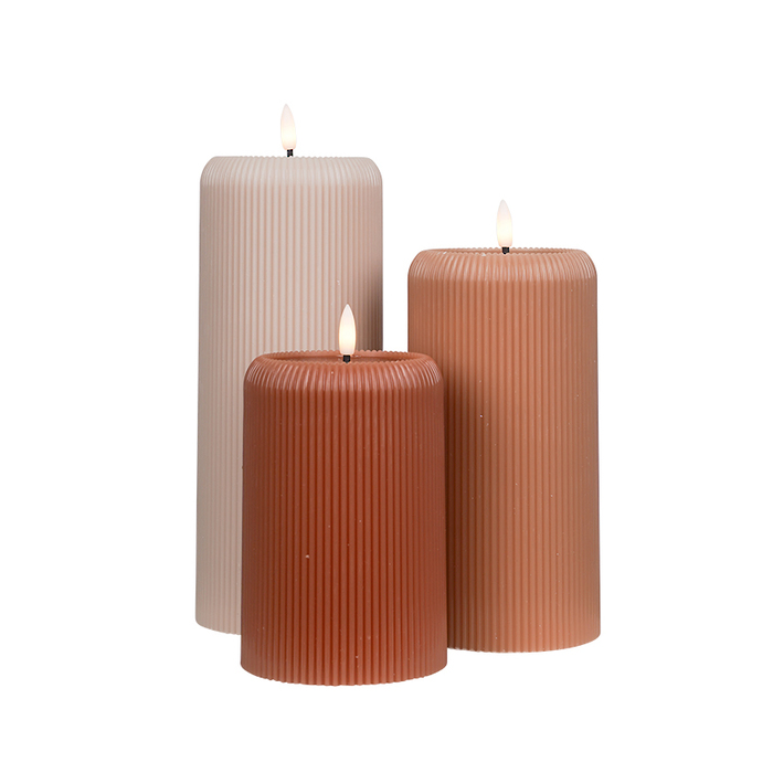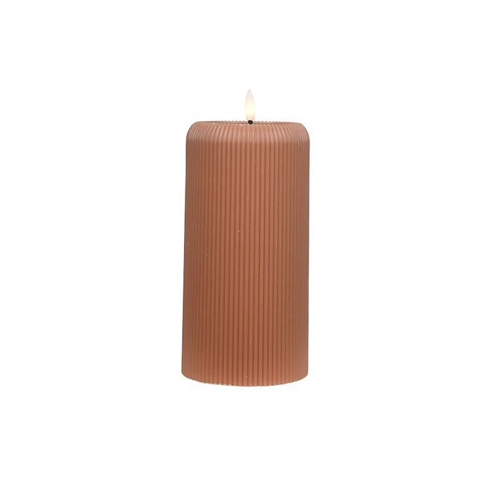 LED battery operated pillar candle featuring a real wax vertical ridge detail.