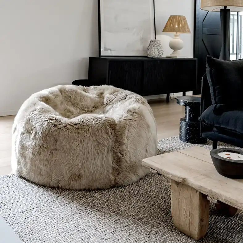 High quality soft New Zealand sheepskins, have been used to create this lush long wool bean bag. Sink into this large beanbag and enjoy its woolly coziness. These beanbags are perfect to lounge in, and add life to any living space.