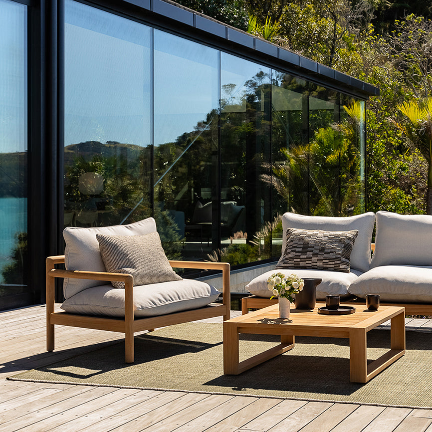 Featuring a simple flatweave, the Lonsdale deep green colourway provides the perfect base for styling a minimal yet refined exterior space.