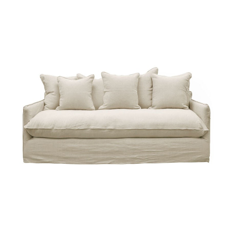 It has a strong tailored silhouette with removable slip covers for easy cleaning. The slipcover is made of a thick hardwearing fabric made of 70% cotton and 30% linen.