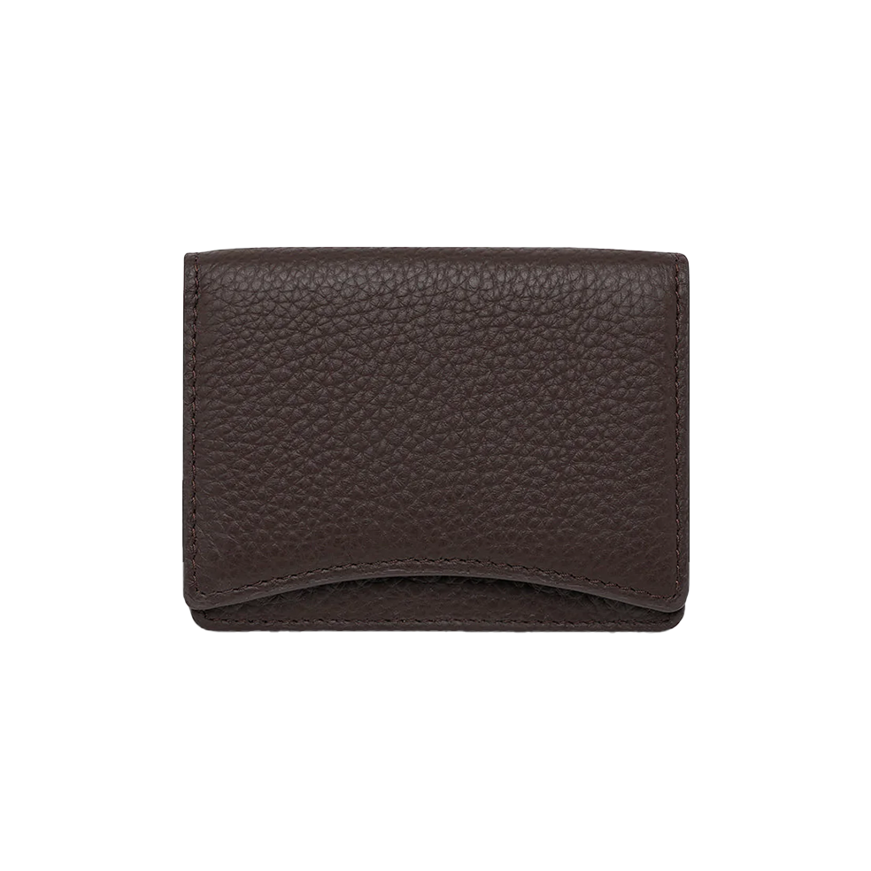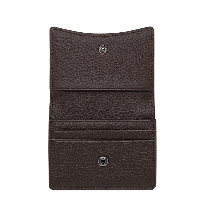 Made from soft shrunken pebble leather the purse opens out to reveal 6 card slots that can fit up to 12 cards, and features space to stash folded bank notes, and a gunmetal magnet button closure.
