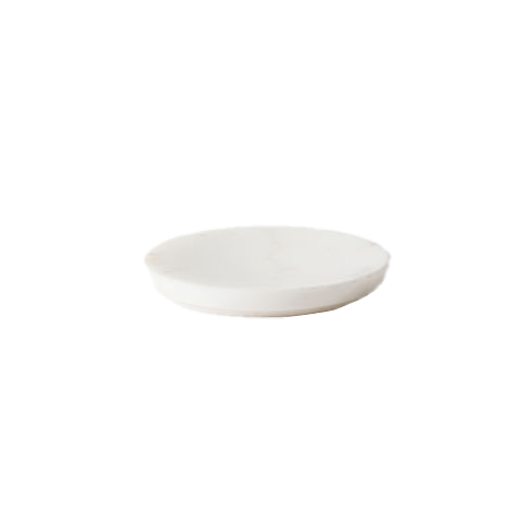 This white round marble soap dish has a refined finish and form that gives the illusion of lightness to its marble materiality.
