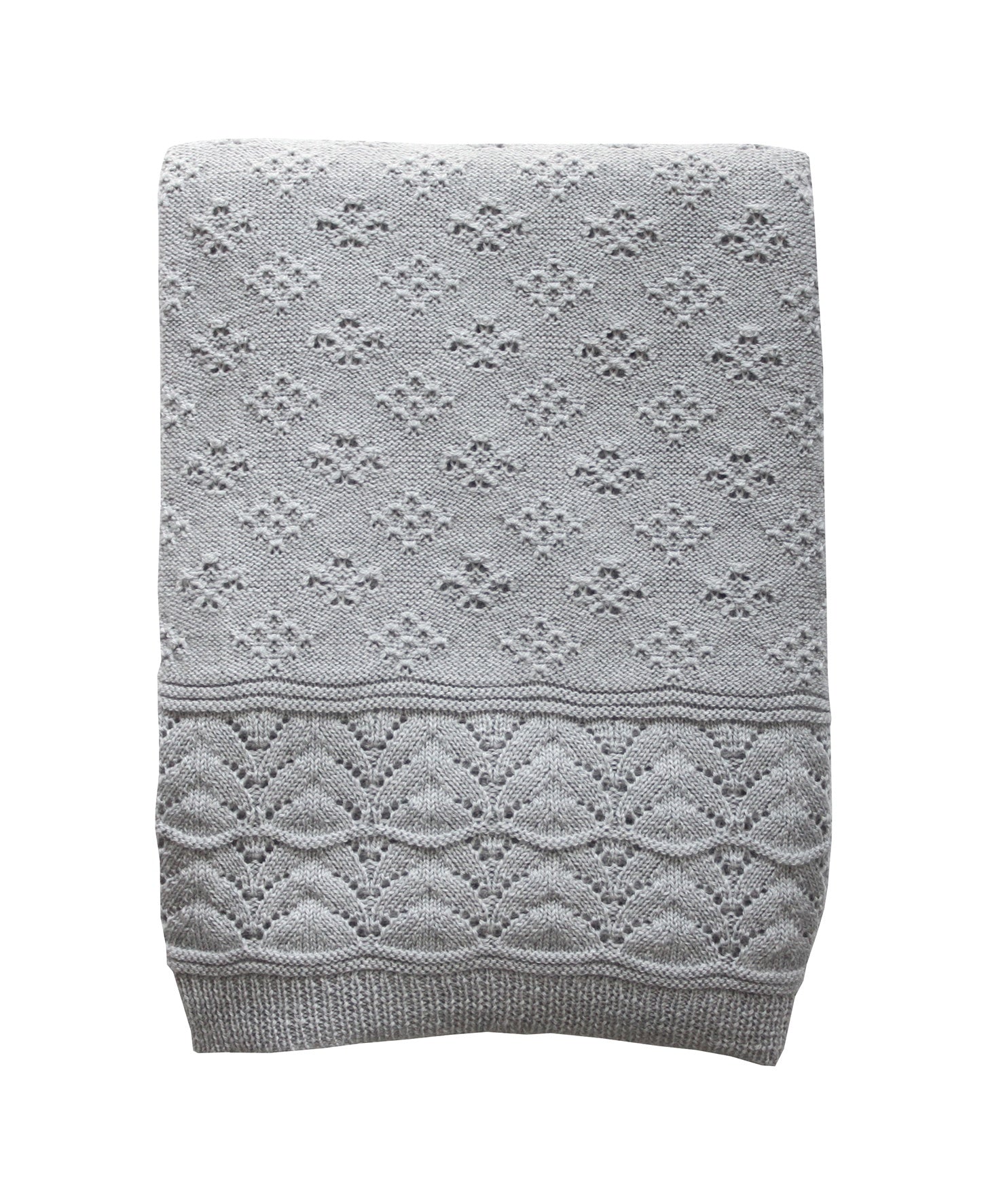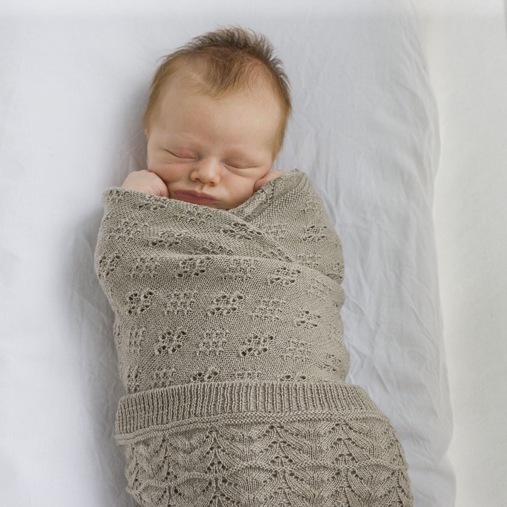 Inspired by crochet and vintage knits of the past, this gorgeous merino baby blanket/shawl is soft and beautiful, as well as being functional.