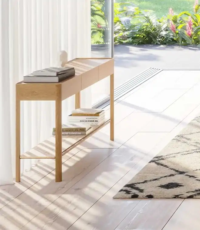 Neil oak console with marble shelf 120cm natural