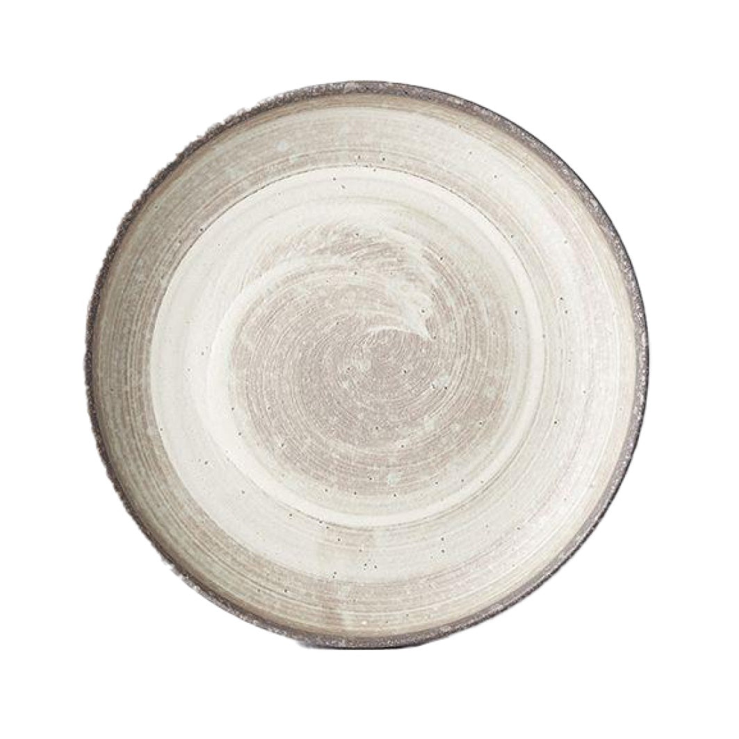This handmade high rim plate features a circular sweep of golden ochre on a earth tone glaze. This plate is ideal to serve risottos, pasta or steak.