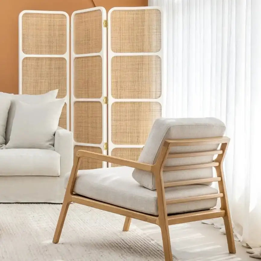 This striking armchair exudes modest Scandinavian style, and has a distinctive ladder back detail.