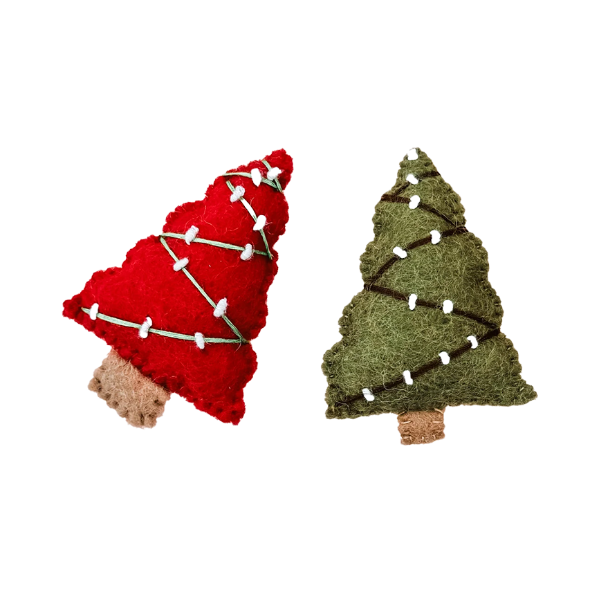 Delightful hanging felt Christmas tree, handmade from New Zealand wool by artisans in Nepal.