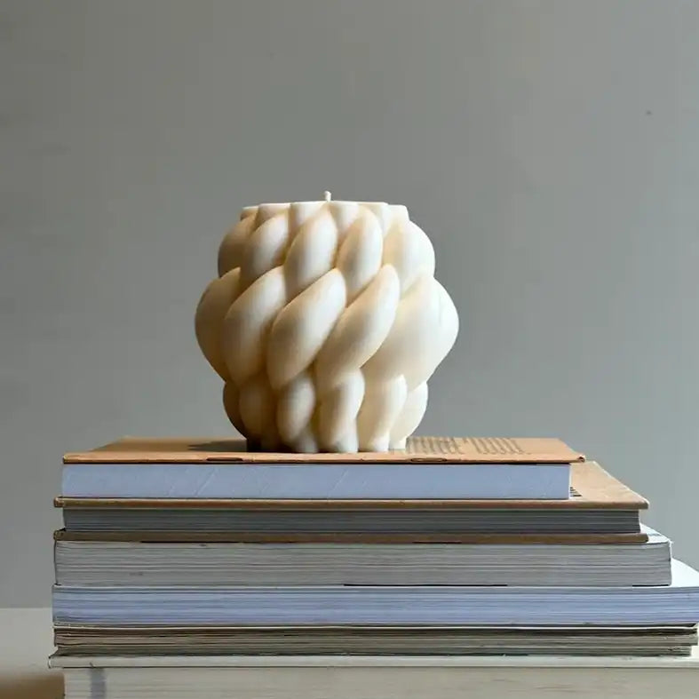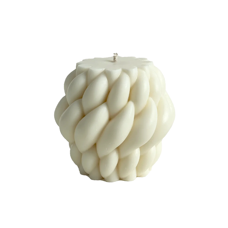 This striking sculptural candle is in an intertwined knot design, and is handcrafted locally in Auckland, NZ.