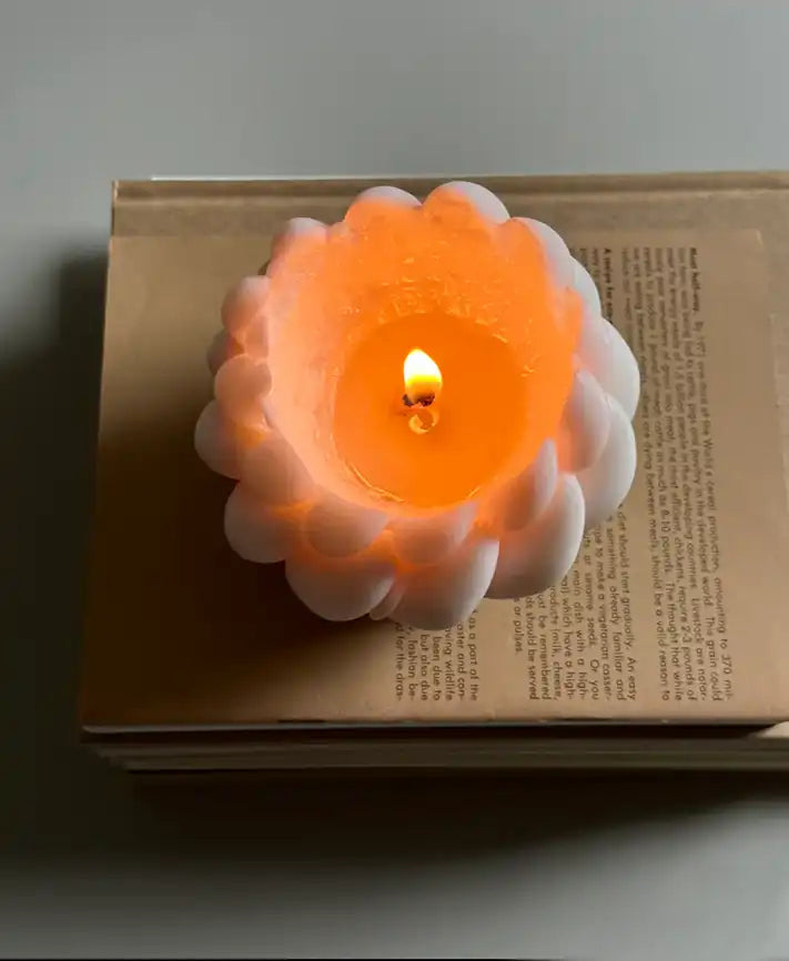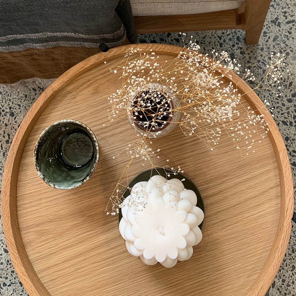 Over the course of a 4-hour burn, the candle will open up to create its own vessel. The ideal opening size is a 7.5cm diameter.